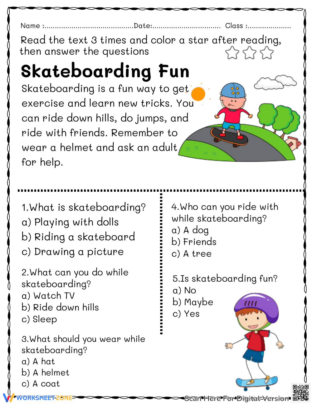 This worksheet is perfect for students who love skateboarding or are interested in learning more about it. It includes a passage about the history of skateboarding, followed by a series of questions to test your understanding of the text. It’s a great way to learn new facts while honing your reading skills.