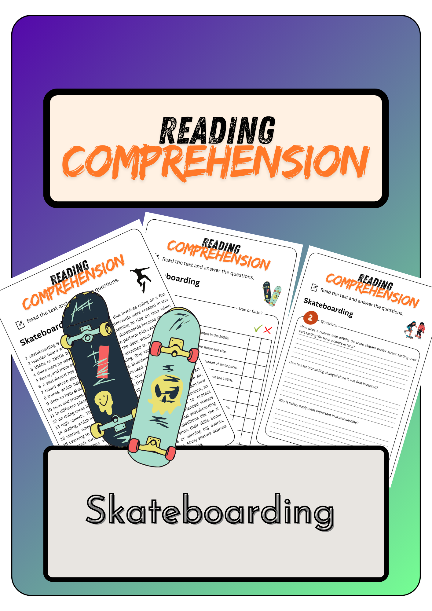 Skateboard Reading Comprehension Worksheet