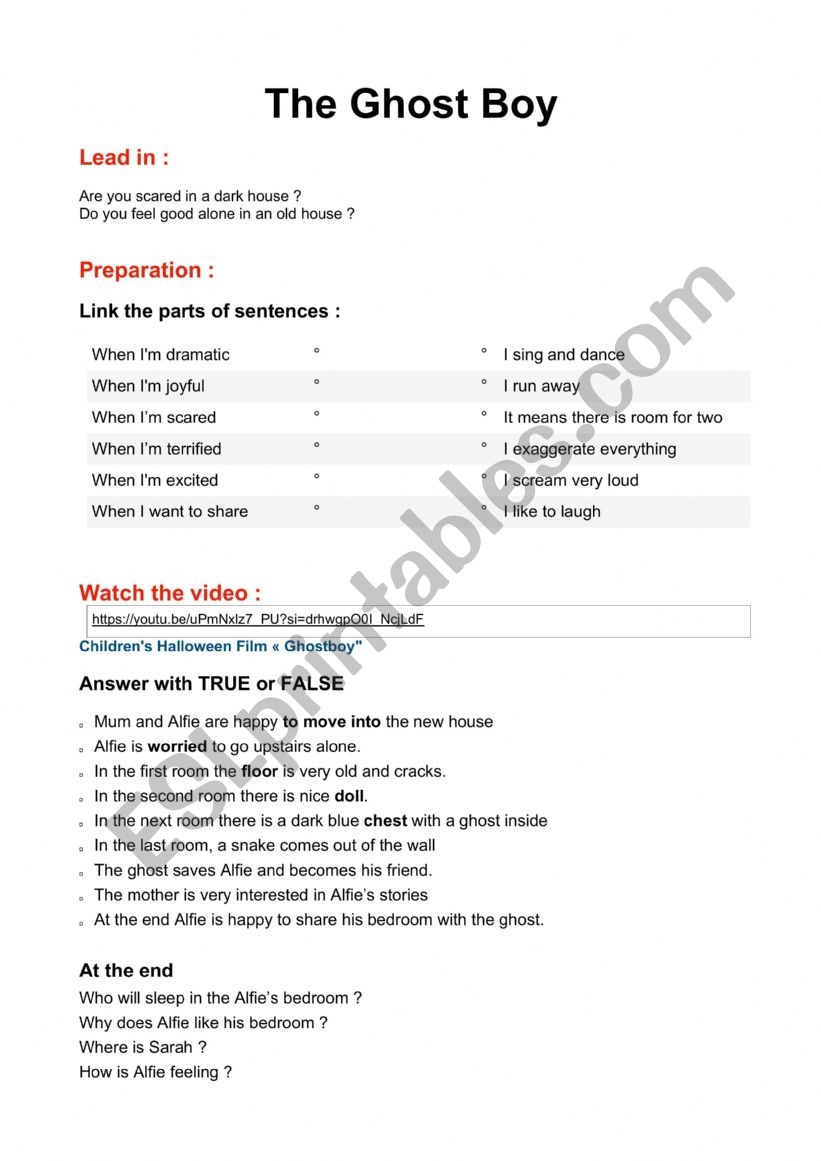 The Ghost Boy Listening Scary Film ESL Worksheet By Delph76