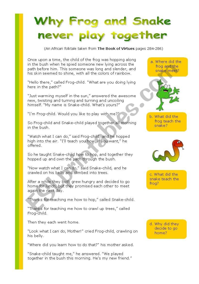 Why Frog And Snake Never Play Together ESL Worksheet By Sharon F