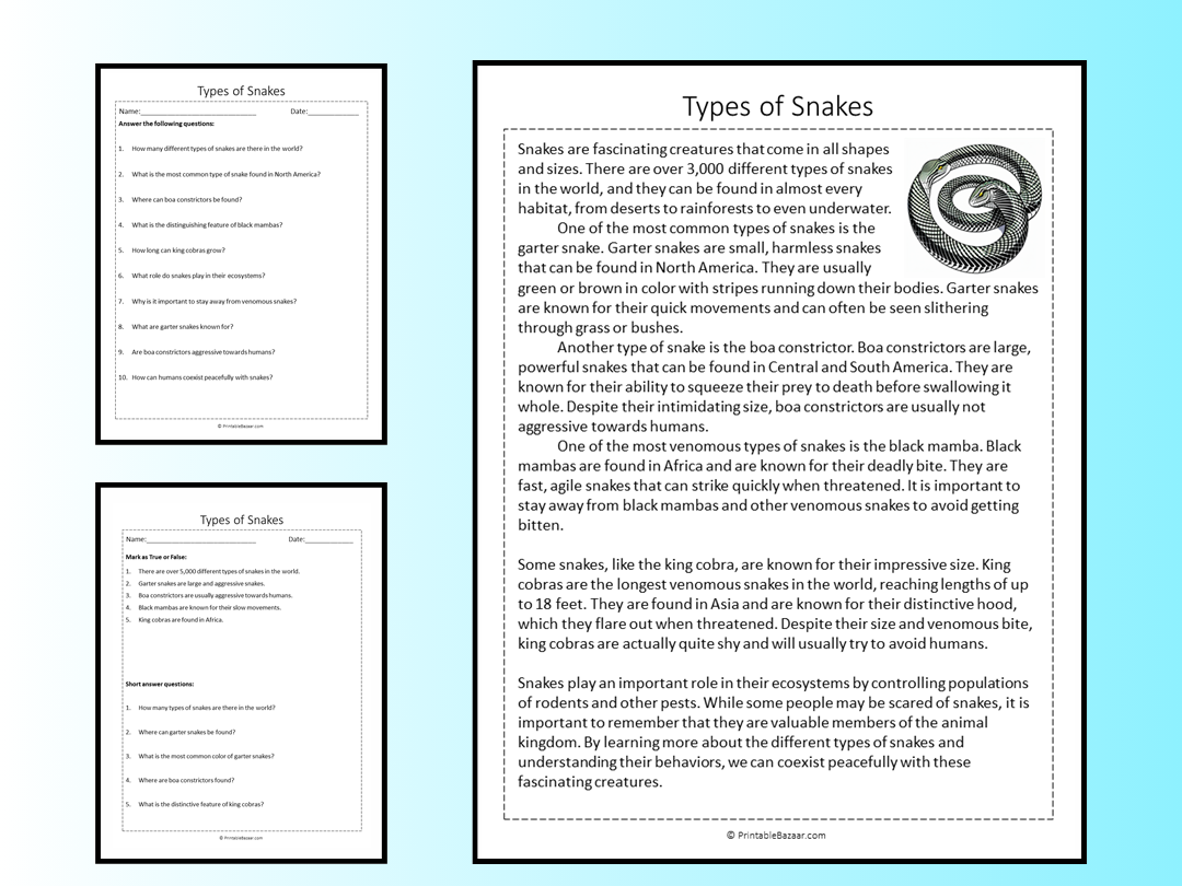 Are you looking for a fun and educational way to help your students improve their reading comprehension skills? Look no further than this Snake Reading Comprehension Worksheet! This worksheet is not only engaging but also informative, making learning a breeze.