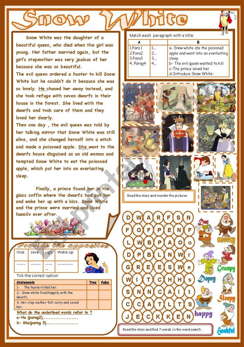 Snow White And The Seven Dwarfs ESL Worksheet By Luzdelaluna Worksheets Library