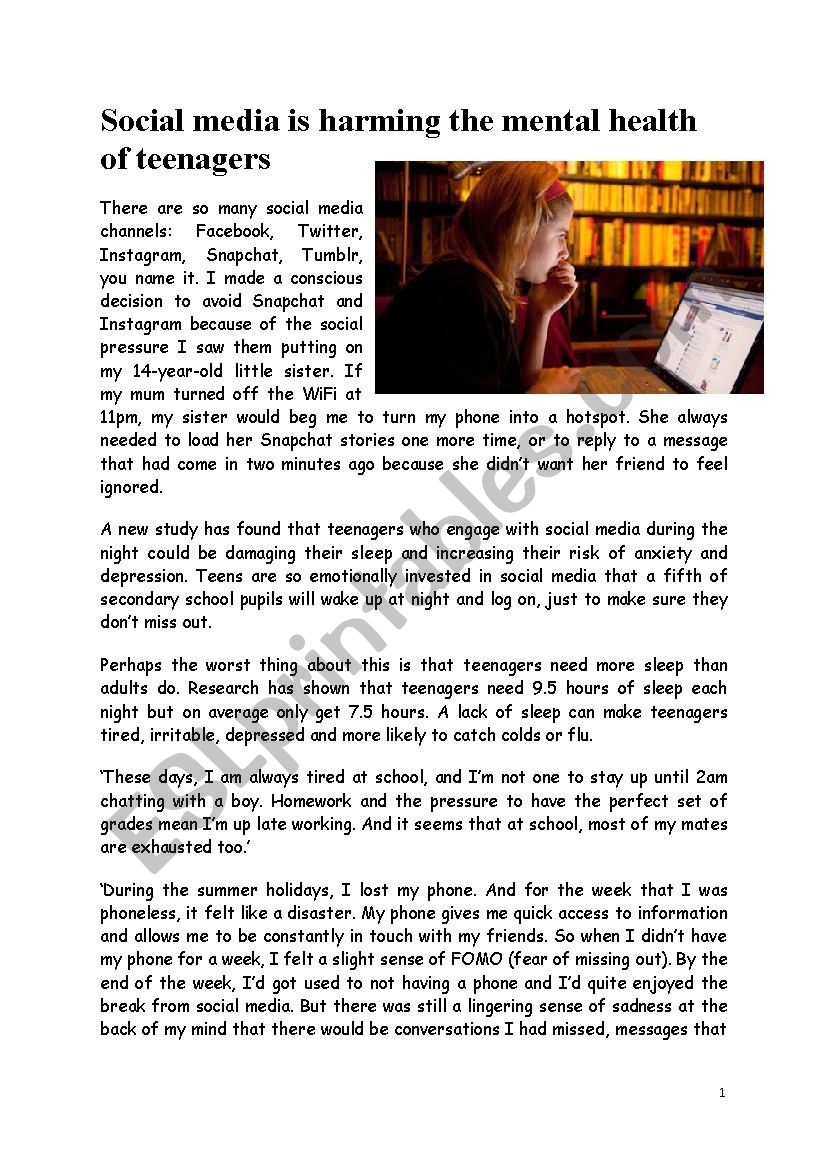 Comprehension Test Six Ways Social Media Negatively Affects Your Mental Health Teacha