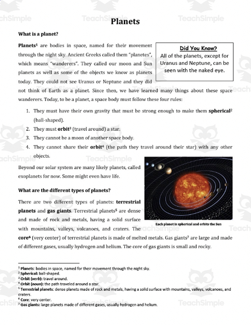Solar System Reading Comprehension Passage And Questions PDF Teaching Resources