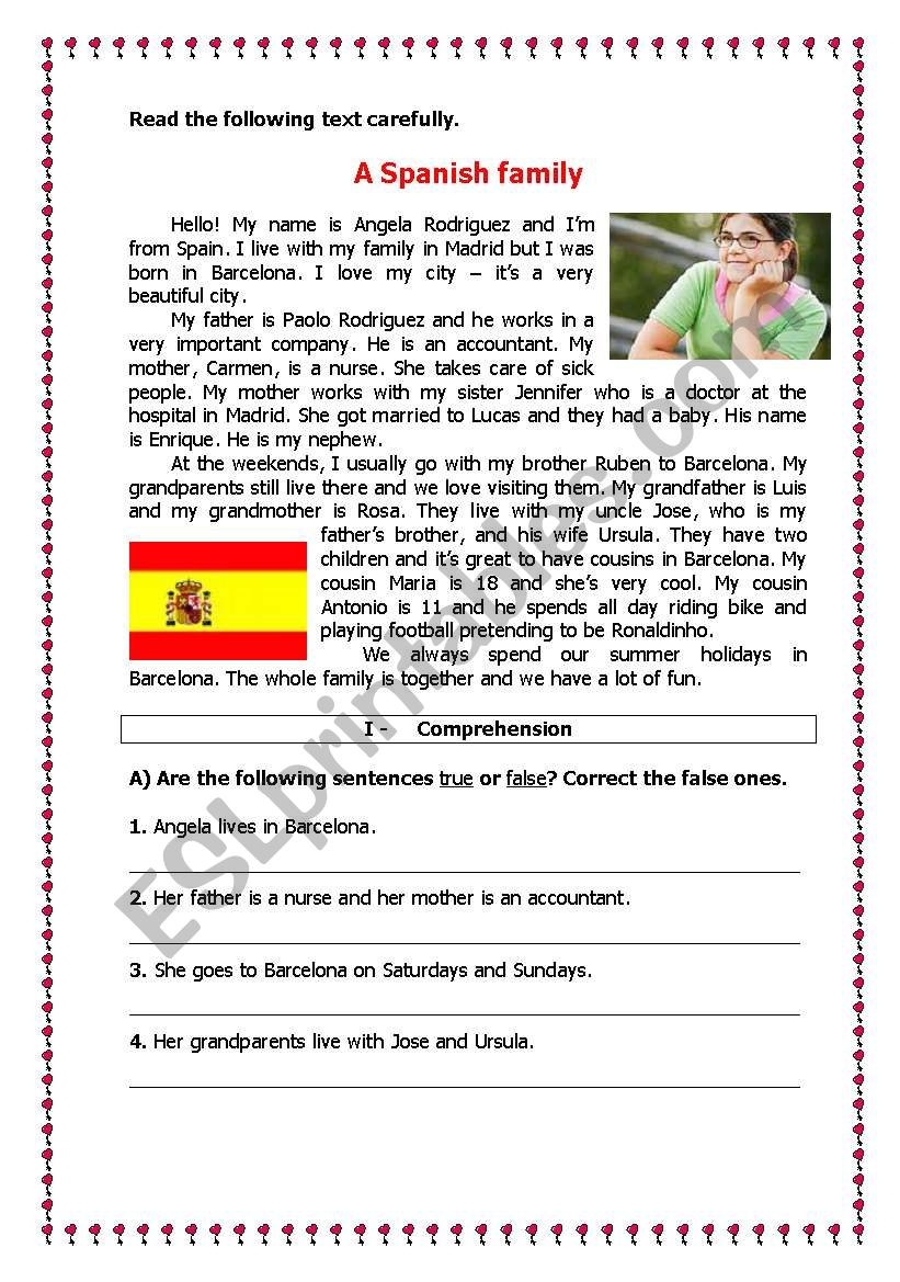 A Spanish Family ESL Worksheet By Ladybug