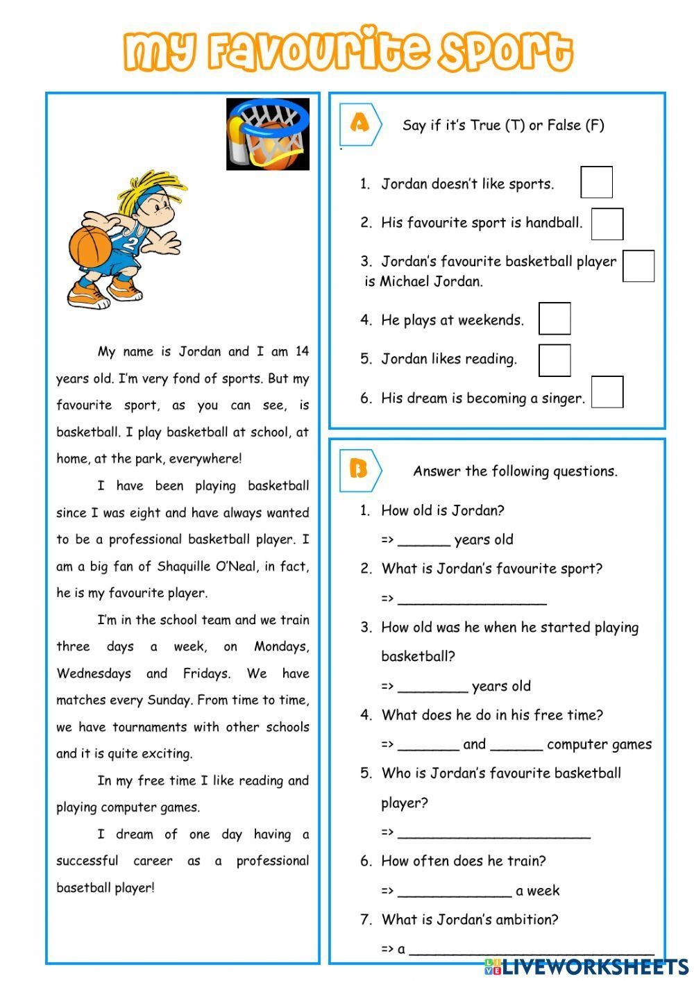 Basketball Reading Comprehension Worksheet Games4esl Worksheets Library