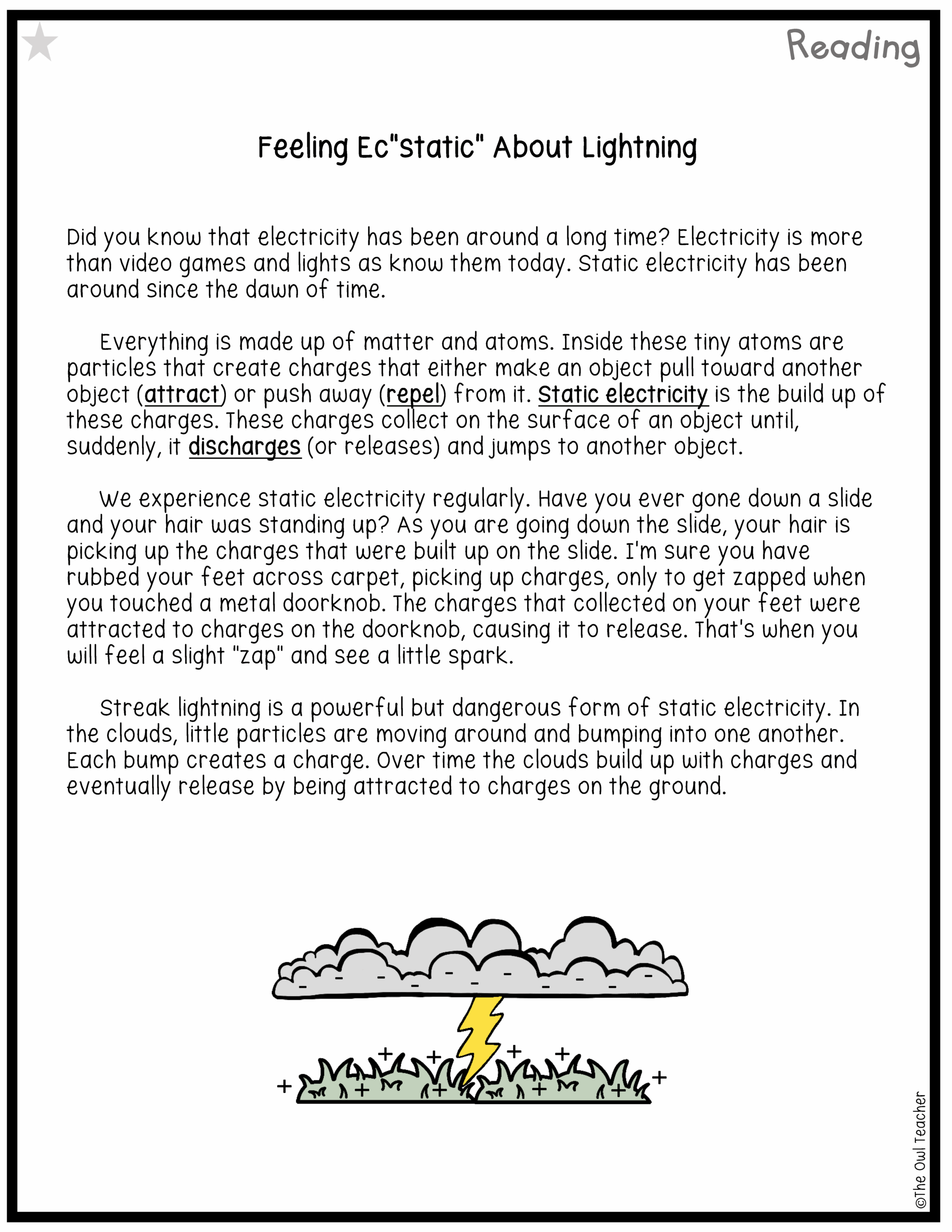 Static Electricity Reading Comprehension Worksheet