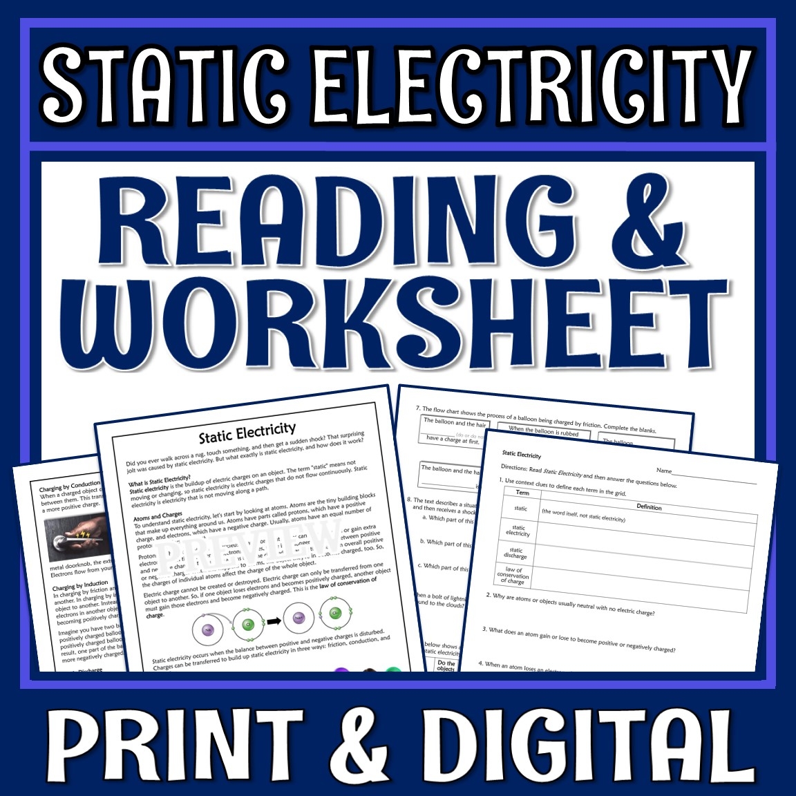 This worksheet is designed to not only test students’ knowledge of static electricity but also improve their reading comprehension skills. By combining science with literacy, students can deepen their understanding of this important topic in a meaningful way.