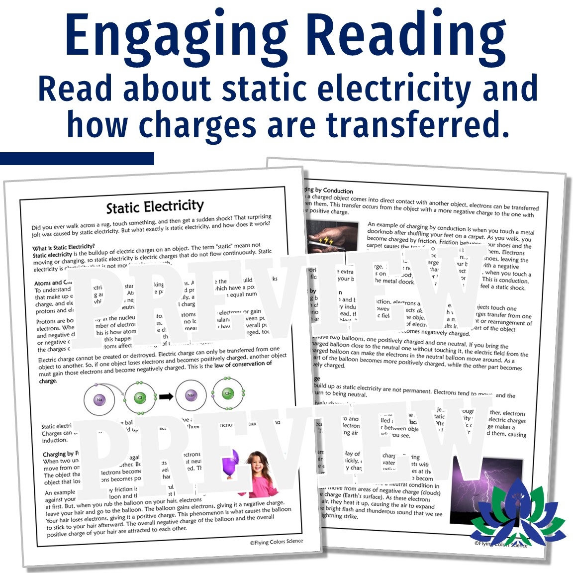 Static Electricity Reading And Worksheet Flying Colors Science