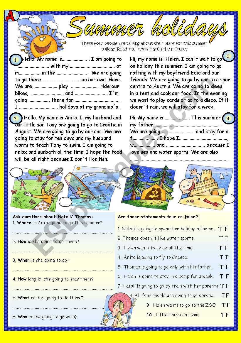 SUMMER HOLIDAYS READING AND COMPREHENSION ESL Worksheet By