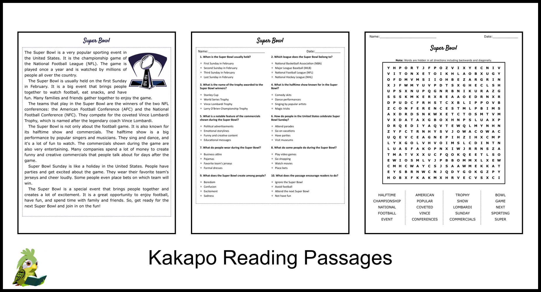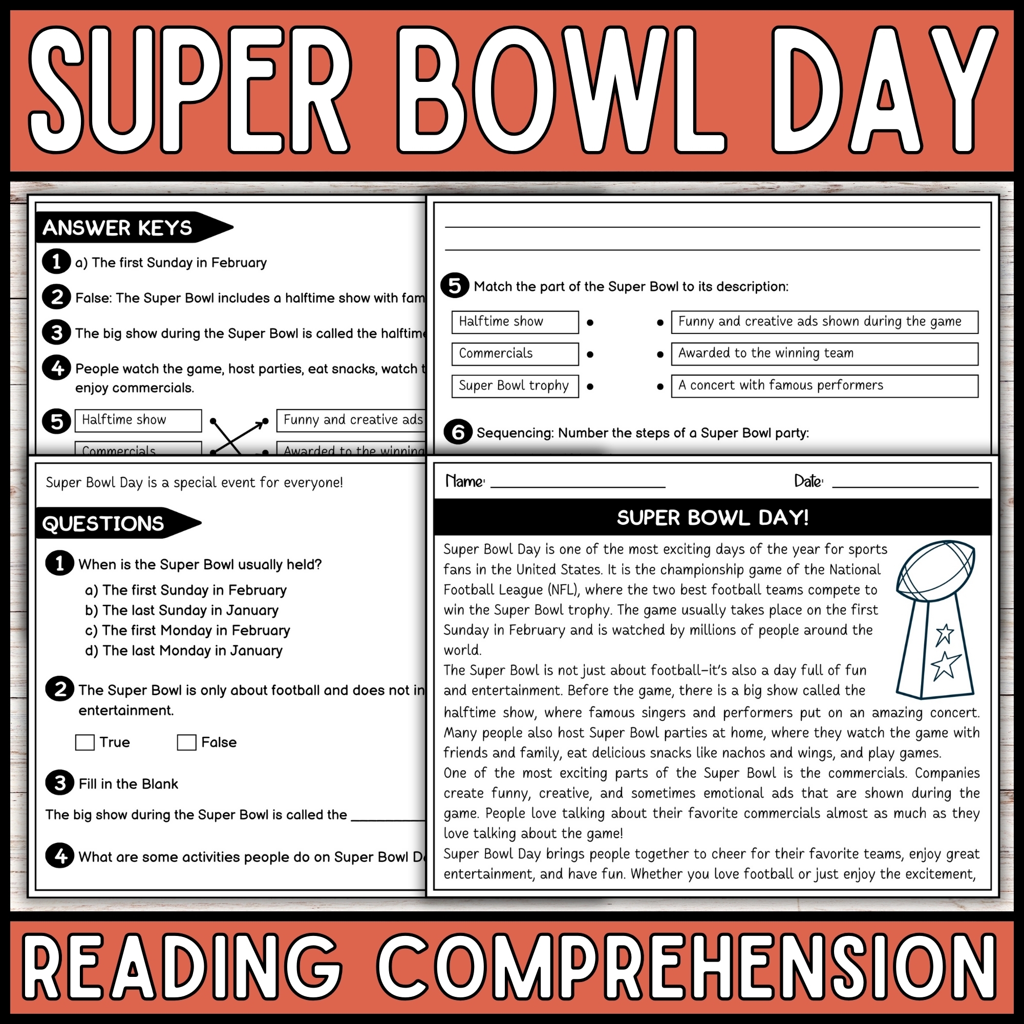 Whether your goal is to boost reading comprehension, expand vocabulary, or simply make learning more engaging, Super Bowl reading comprehension worksheets are a fantastic resource. So, why not incorporate these fun and educational activities into your lesson plans or home learning routine today?