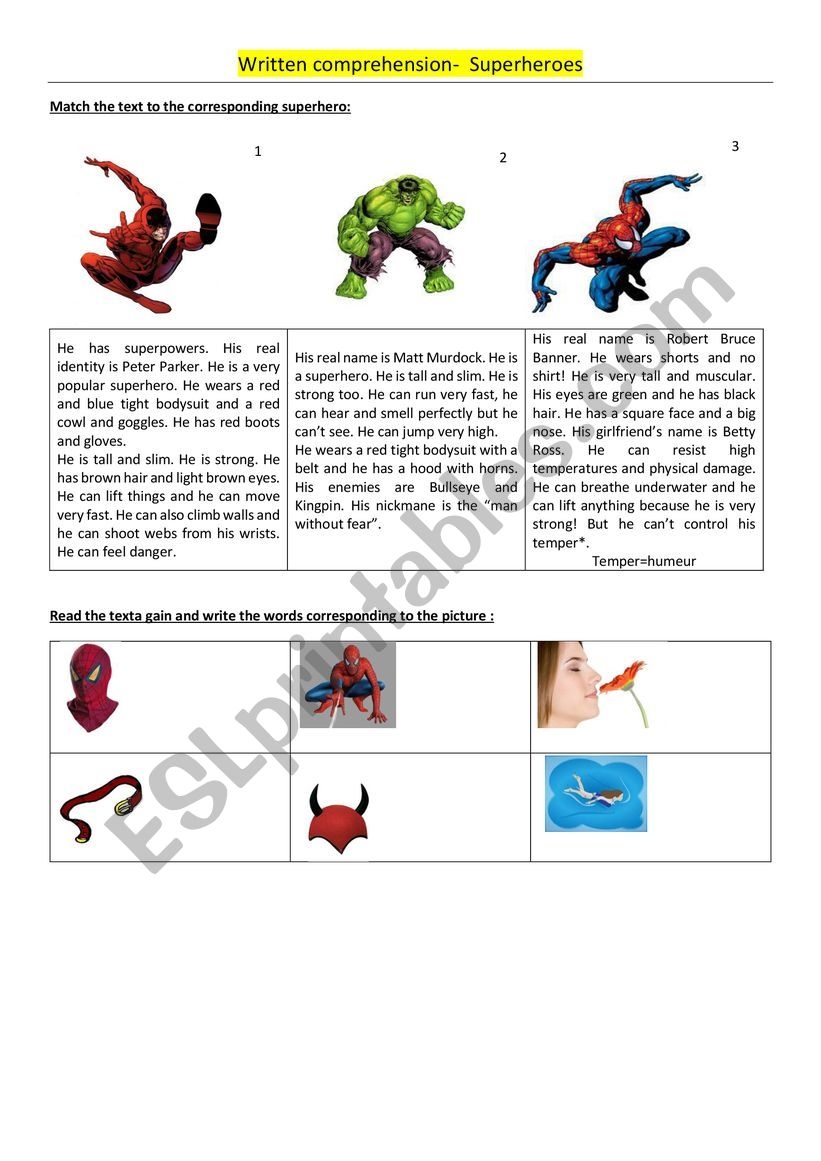 Superheroes Reading Comprehension ESL Worksheet By Profy2007