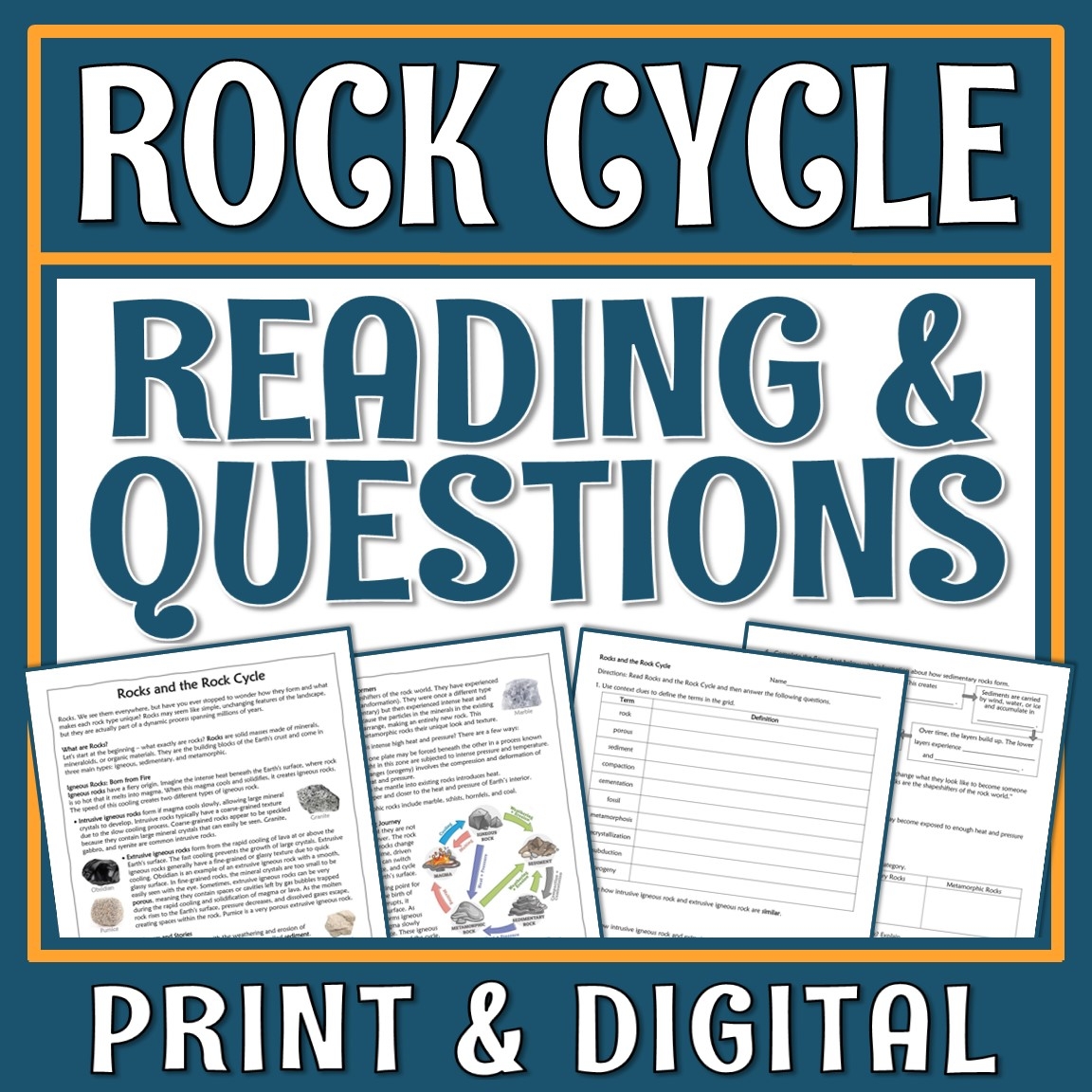 The Rock Cycle Reading Comprehension Passage Printable Worksheet Teaching Resources