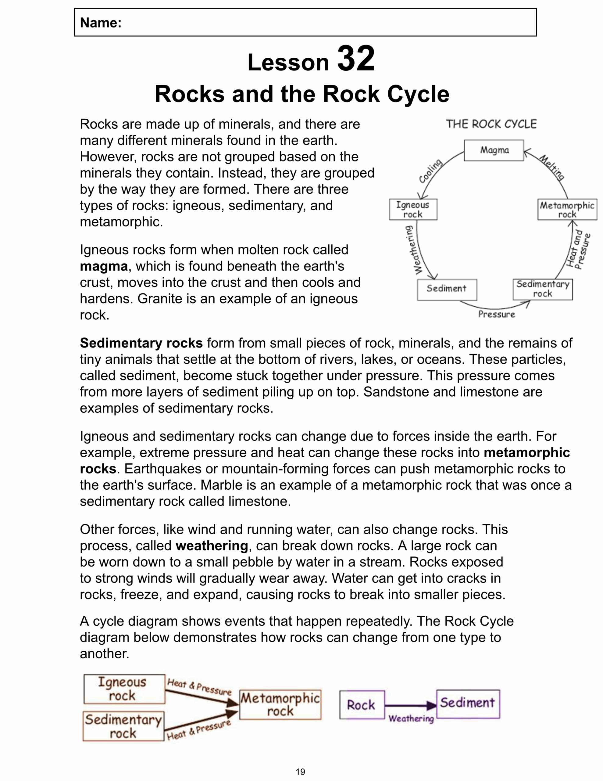 Rock Cycle Reading Comprehension Worksheets Laney Lee