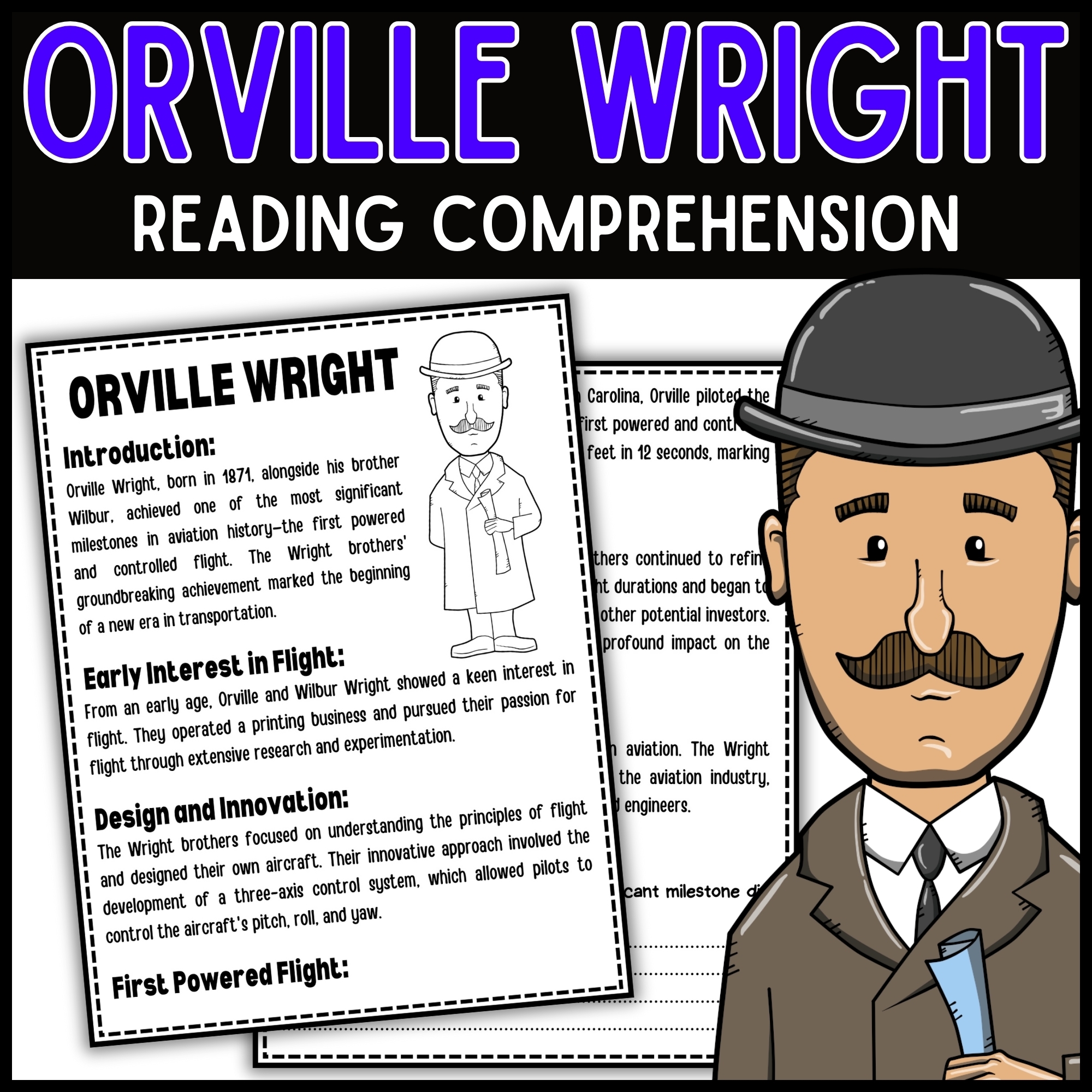 Orville Wright Reading Comprehension Passage And Questions Made By Teachers