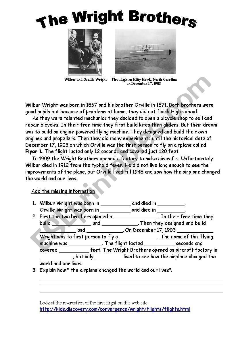 The Wright Brothers ESL Worksheet By Ronit85