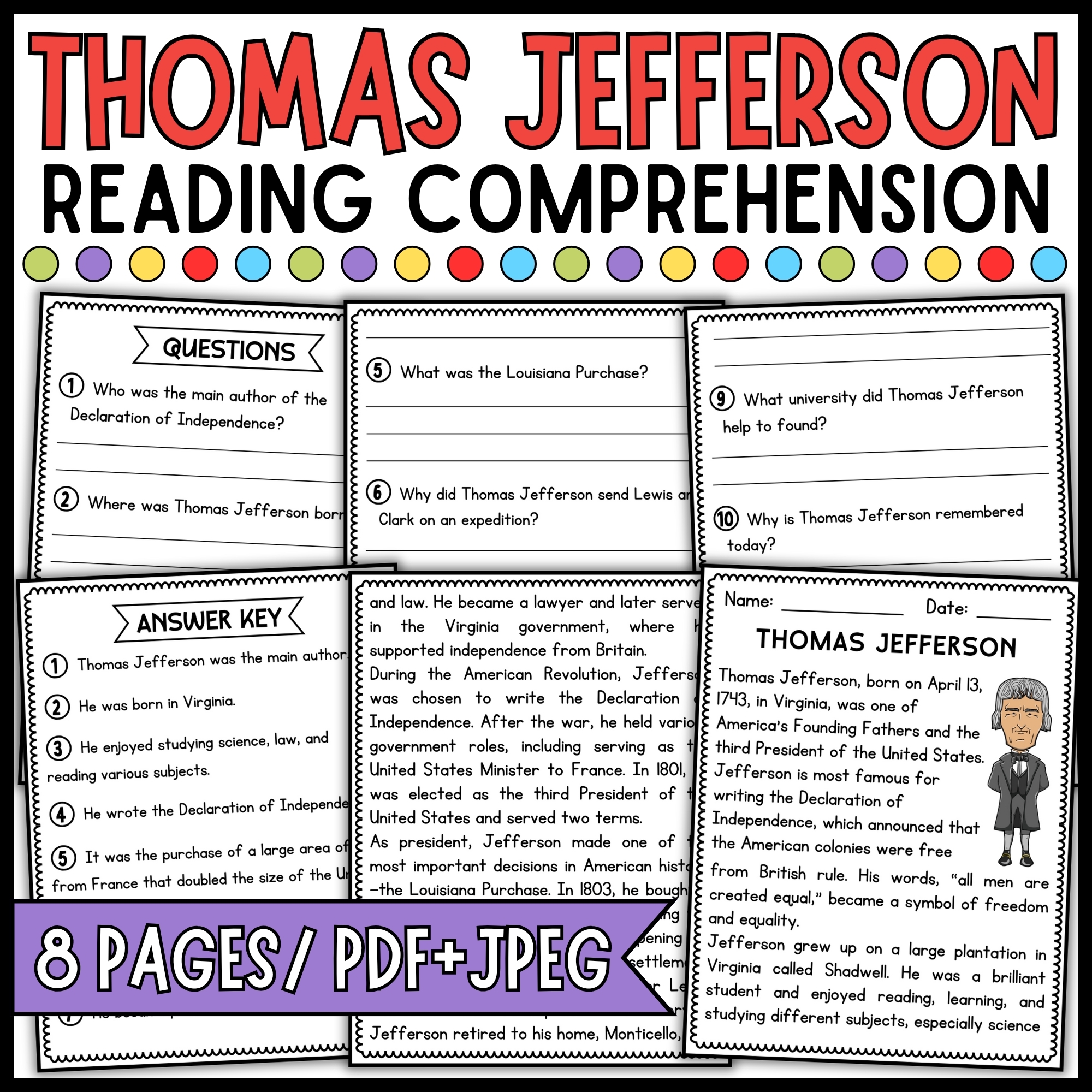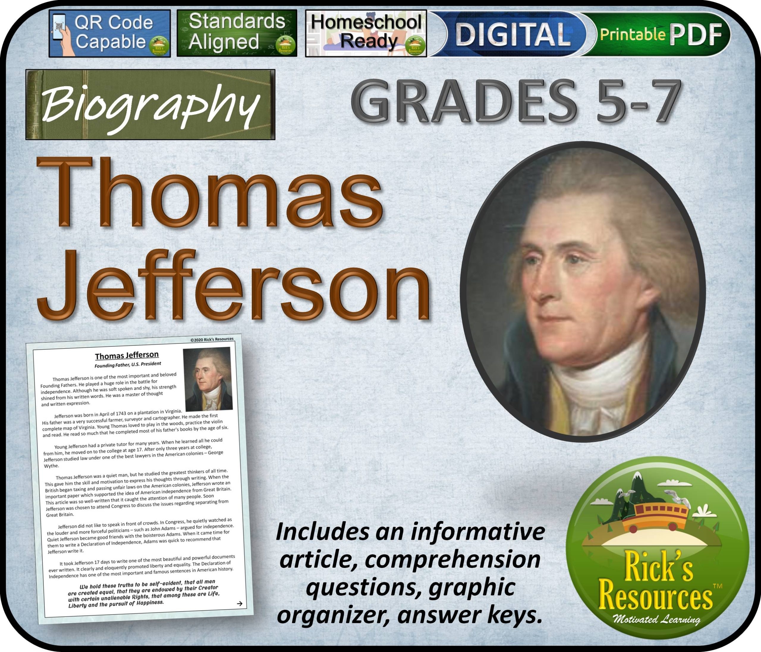 Thomas Jefferson Biography Reading Comprehension