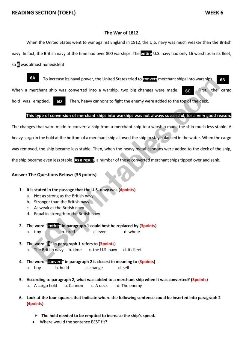 Explore a Variety of TOEFL Reading Comprehension Worksheets