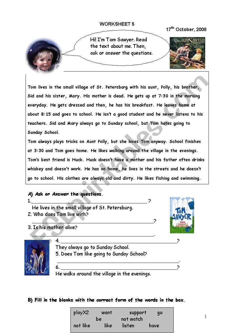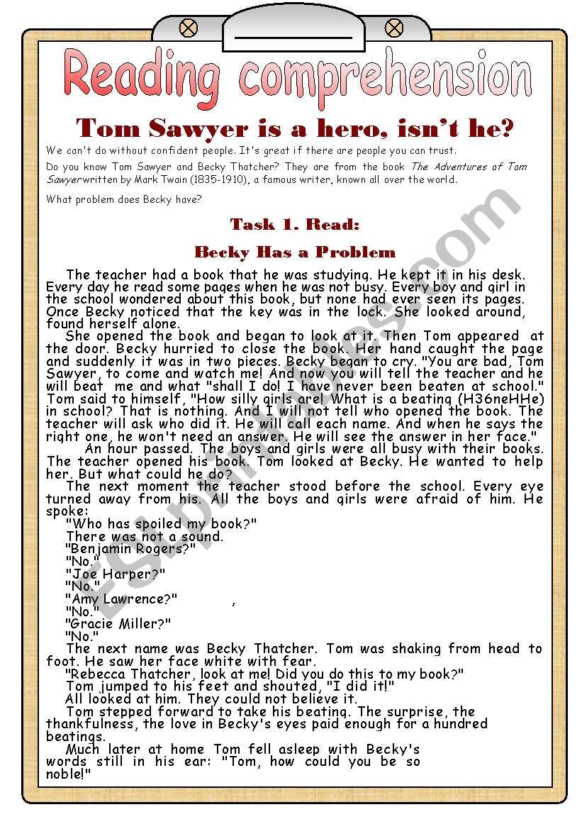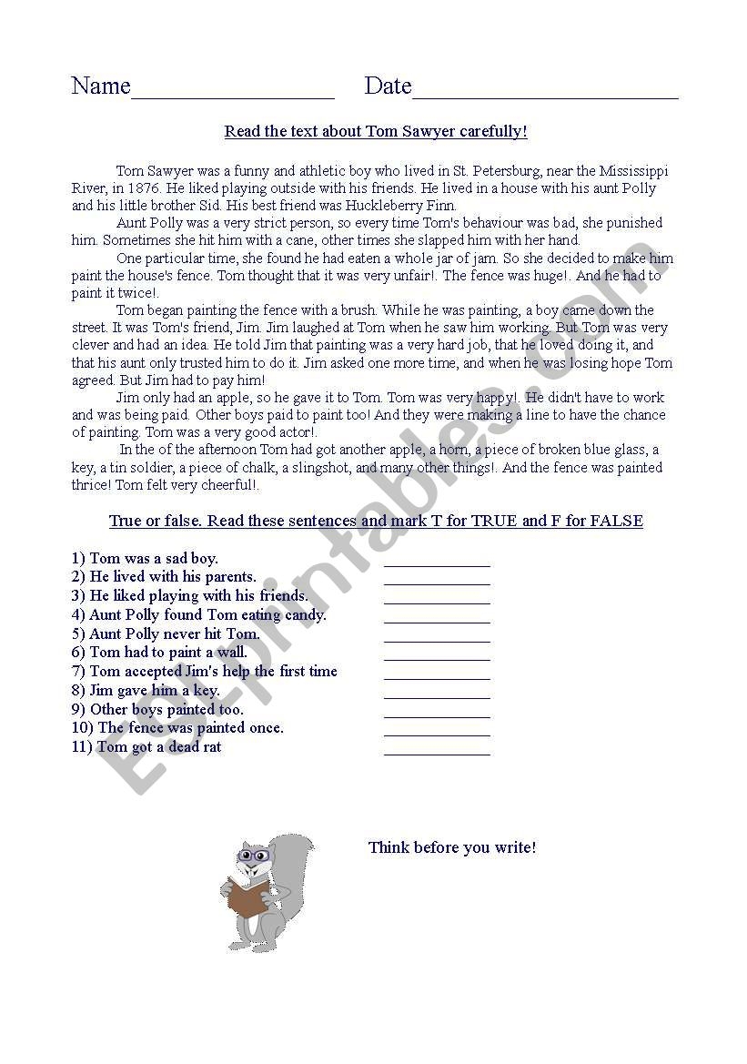 Tom Sawyer Reading Comprehension ESL Worksheet By Setzer