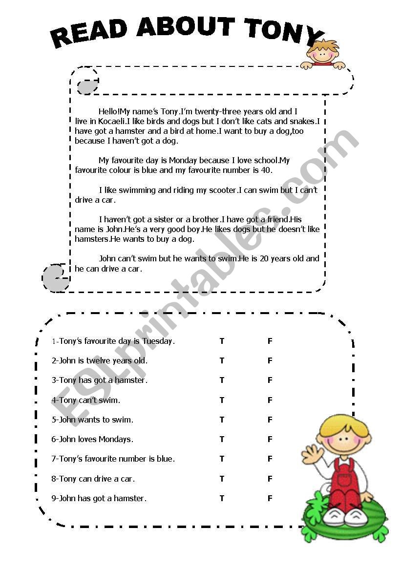 Reading Comprehension Text With True False Sentences ESL