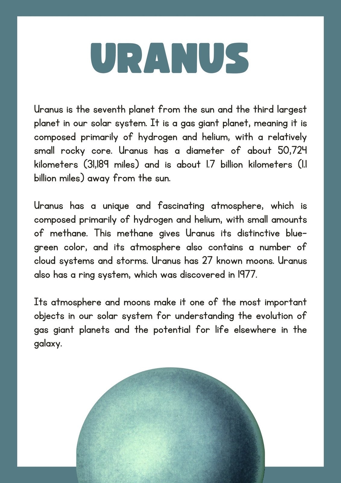 Explore the Universe with our Uranus Reading Comprehension Worksheet