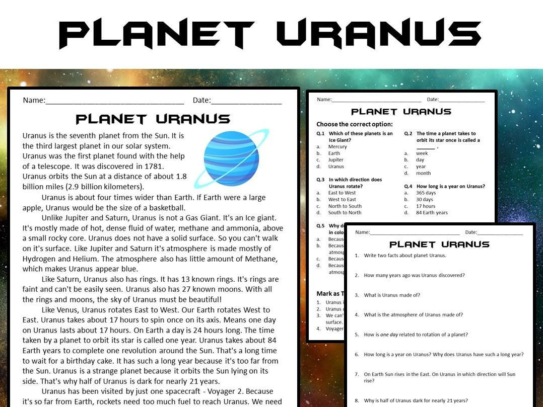 Uranus Reading Comprehension Passage And Questions PDF Teaching Resources