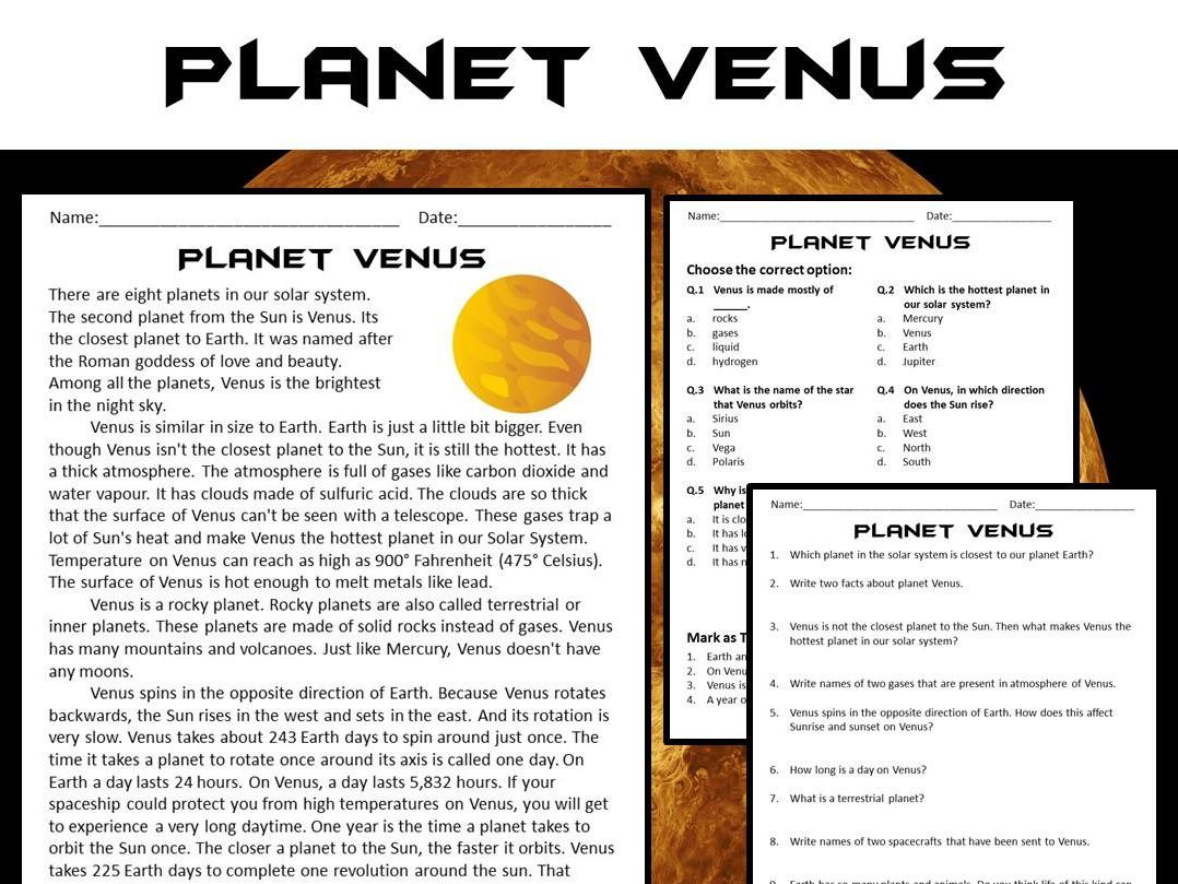 Venus Reading Comprehension Passage And Questions PDF Teaching Resources