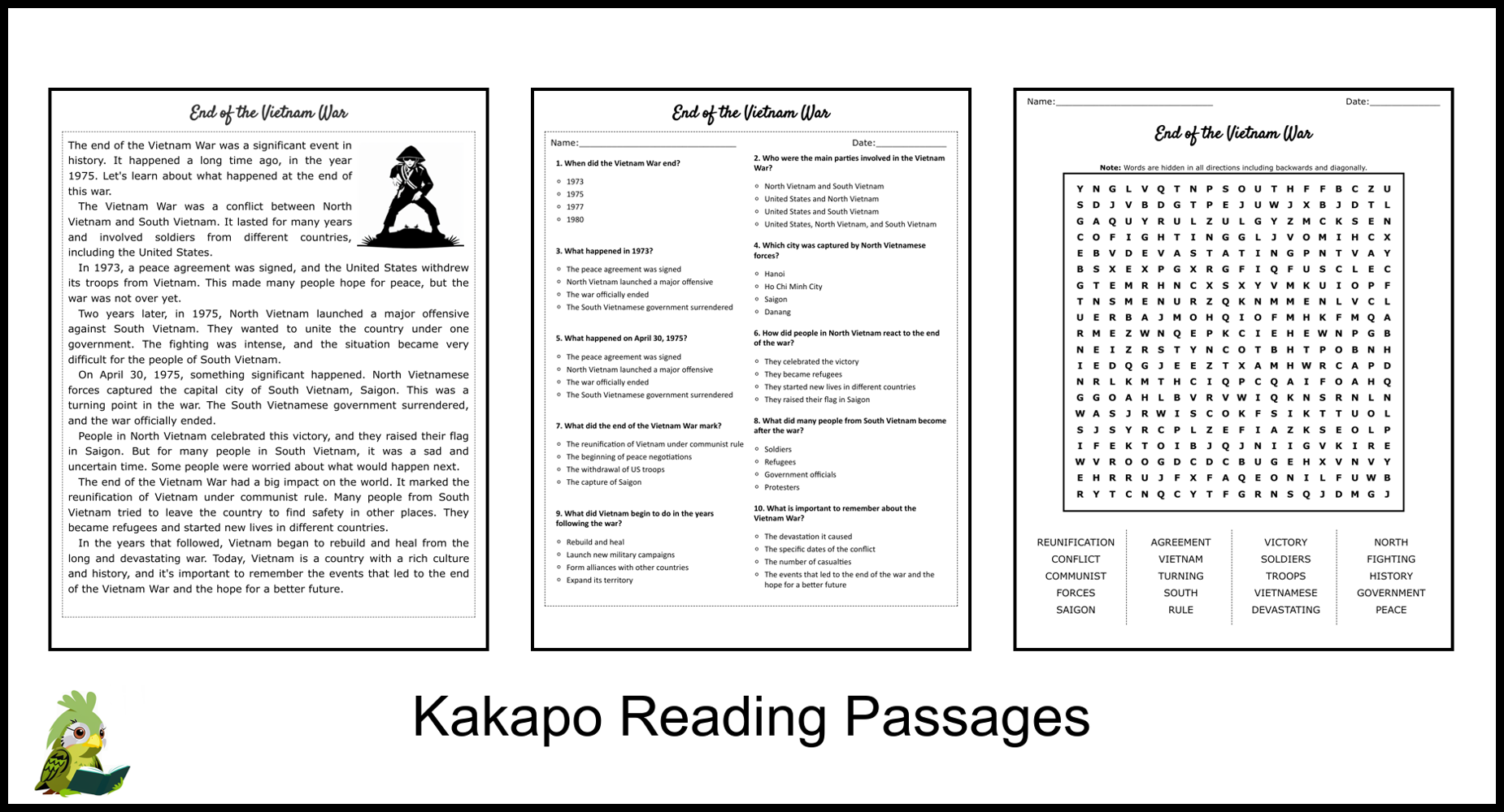 These worksheets are designed to help students improve their reading skills while also learning about the key events, figures, and impact of the Vietnam War. They can be used in the classroom or for homework assignments to reinforce learning.
