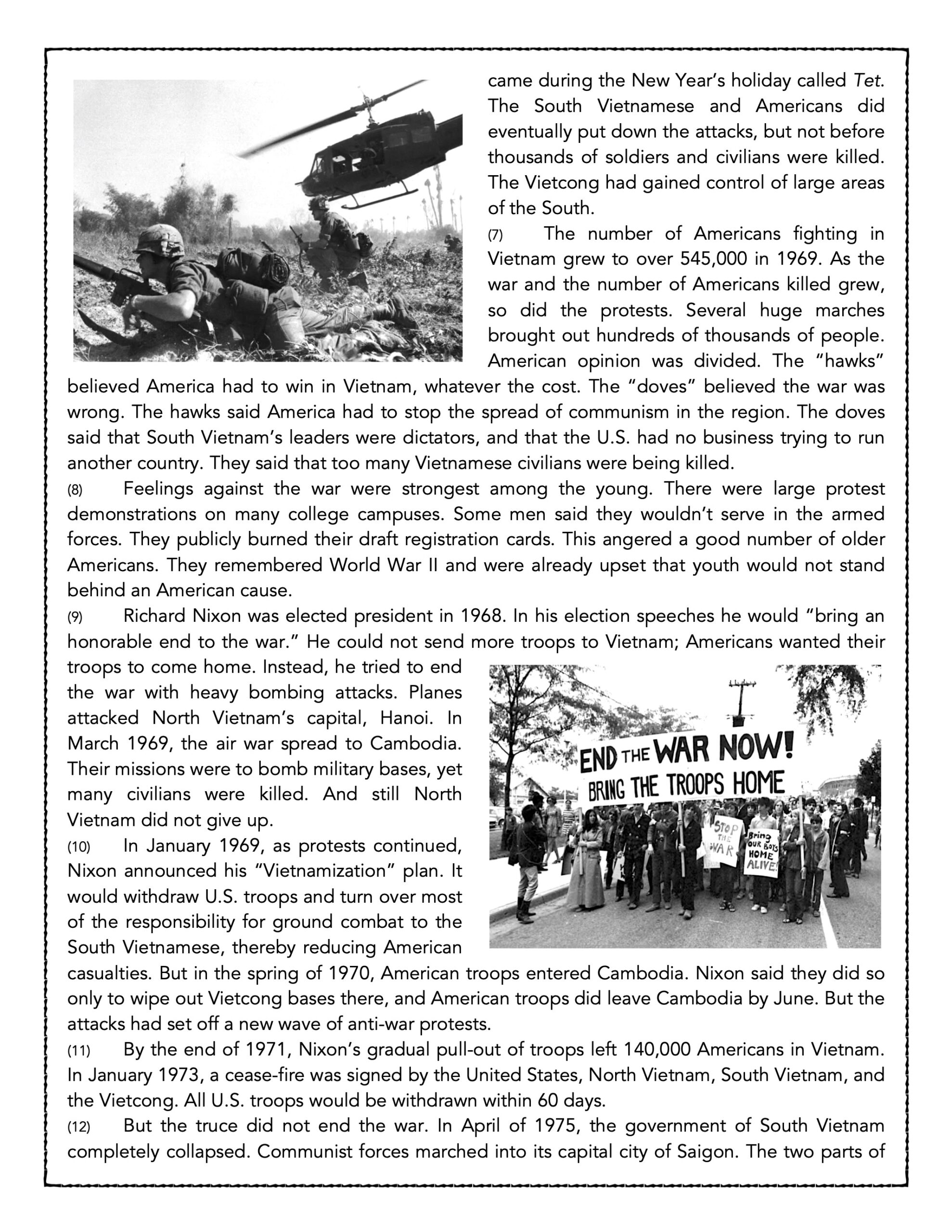 Vietnam War Reading Comprehension Worksheets