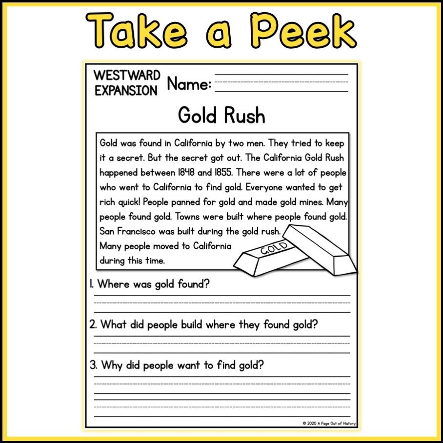 Westward Expansion Reading Comprehension Worksheet Pdf