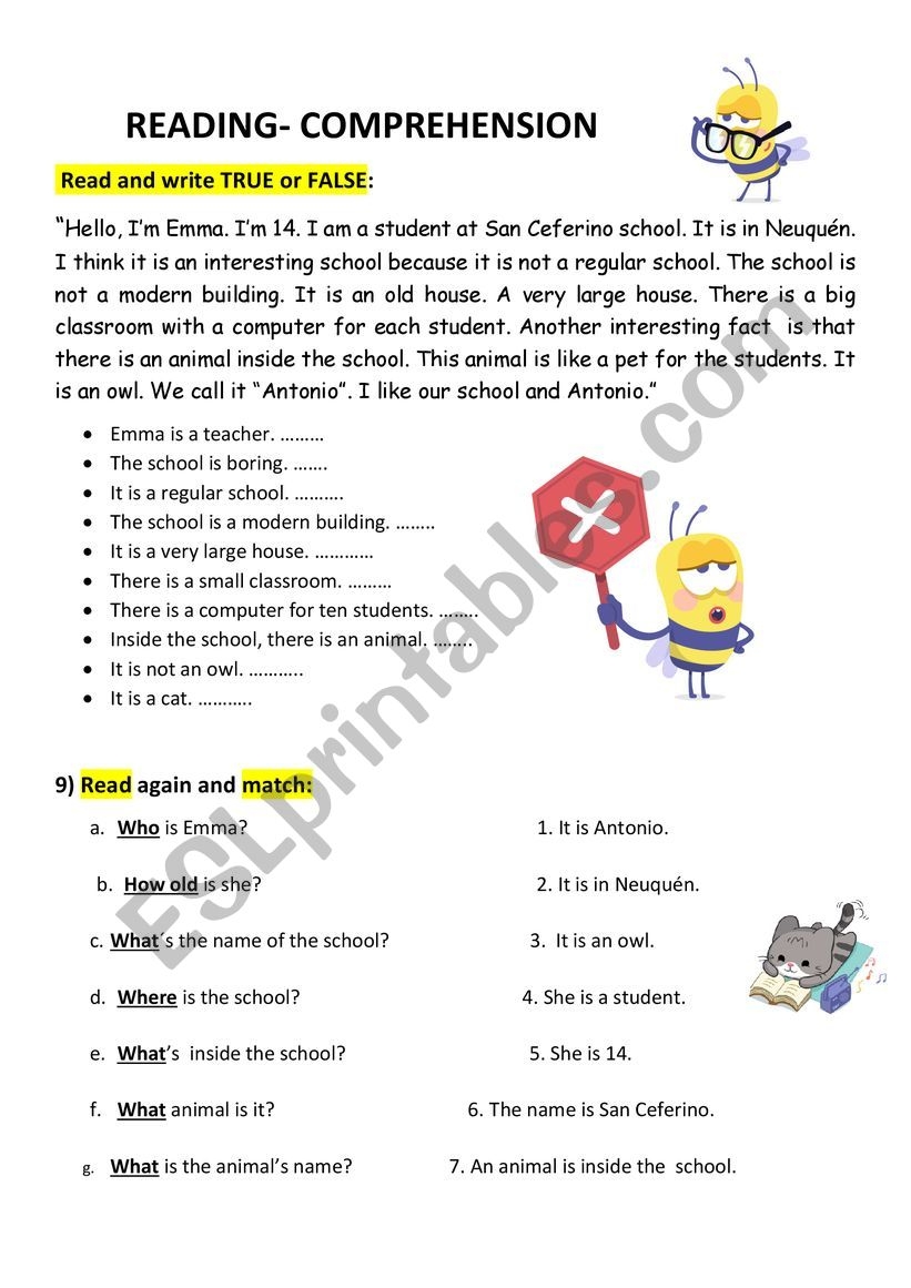Reading Comprehension Wh questions ESL Worksheet By Marywell