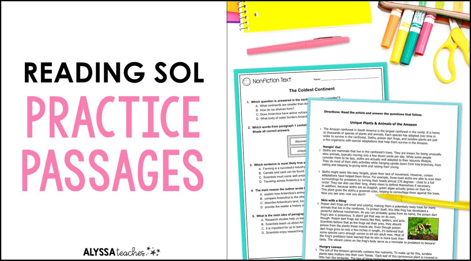 Reading SOL Practice Passages For 4th Grade Alyssa Teaches