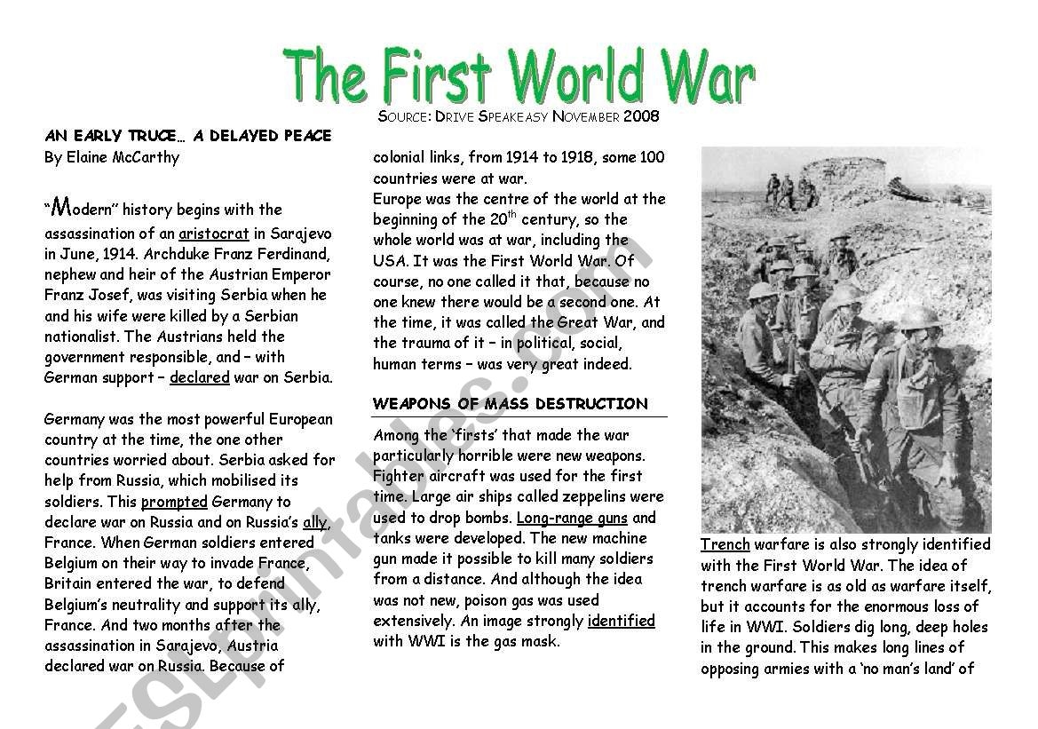 Topic The First World War ESL Worksheet By St phanie Debruyne