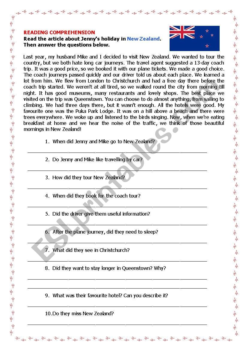 NEW ZEALAND Reading Comprehension ESL Worksheet By Modelena