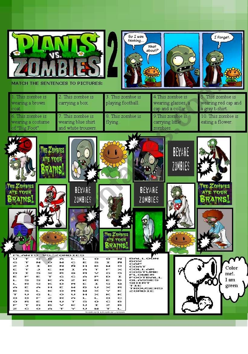 PLANTS VS ZOMBIES 1 ESL Worksheet By My Favorite Worksheets