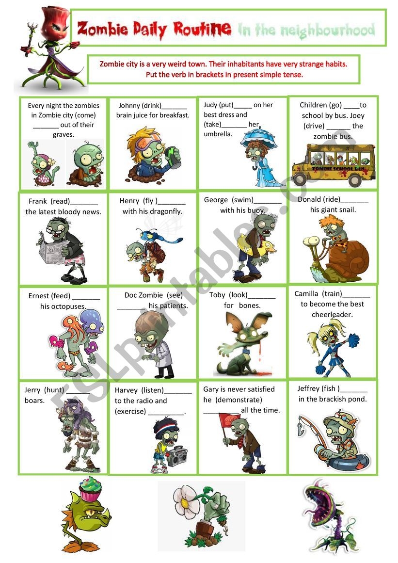 Zombie Daily Routine Present Simple ESL Worksheet By Cariboo